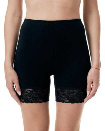 +Size. Garie šorti no organiskās kokvilnas ar mežģīnēm. Paaugstināti. Melni.