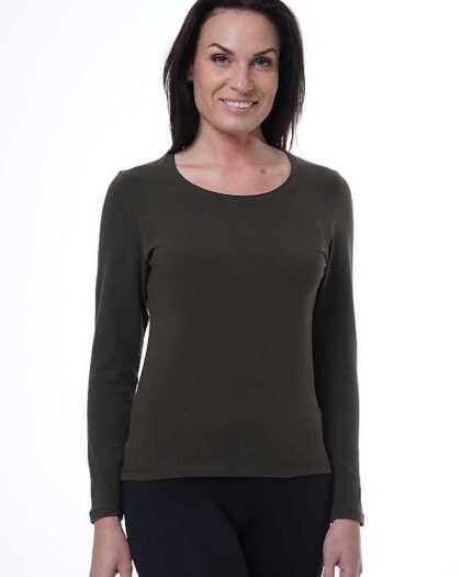 Sieviešu T-krekls ar garām piedurknēm. Haki.