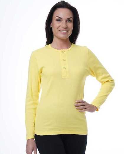 “Henley” sieviešu T-krekls ar garām piedurknēm. Dzeltens.