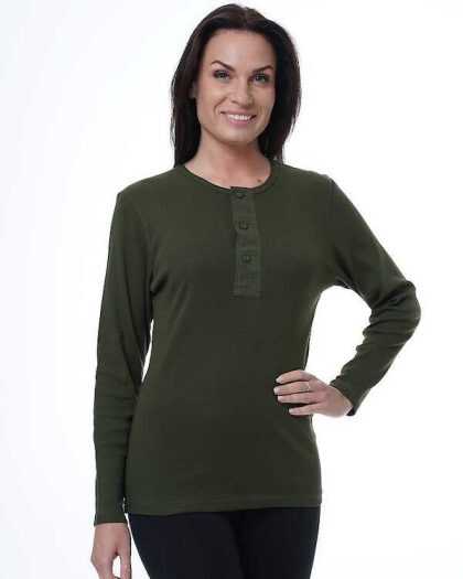 “Henley” sieviešu T-krekls ar garām piedurknēm. Haki.