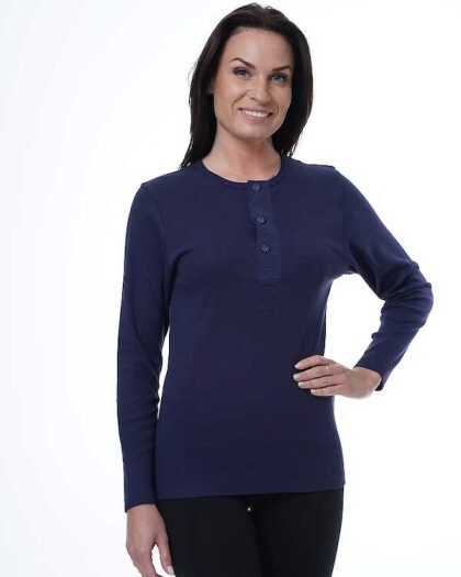 “Henley” sieviešu T-krekls ar garām piedurknēm. Tumši Zils.