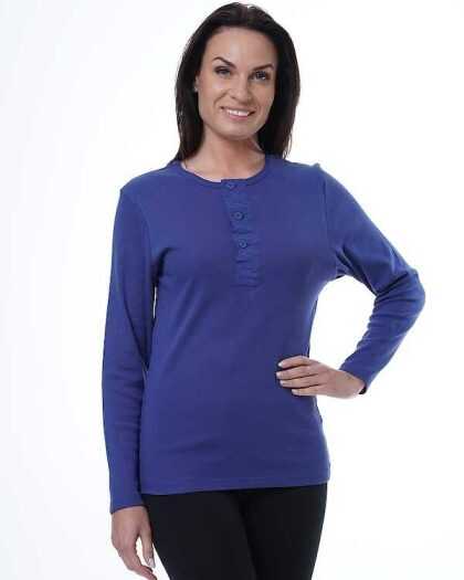 “Henley” sieviešu T-krekls ar garām piedurknēm. Zils.