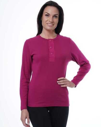 “Henley” sieviešu T-krekls ar garām piedurknēm. Fuksija.