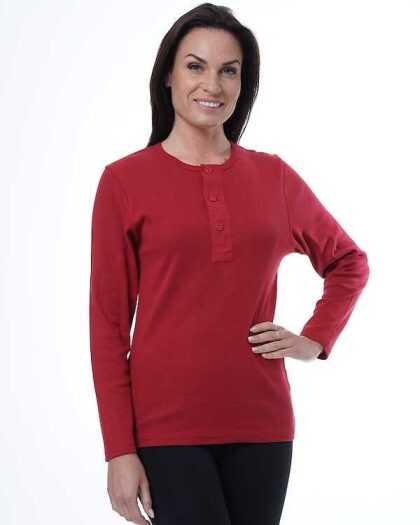 “Henley” sieviešu T-krekls ar garām piedurknēm. Sarkans.
