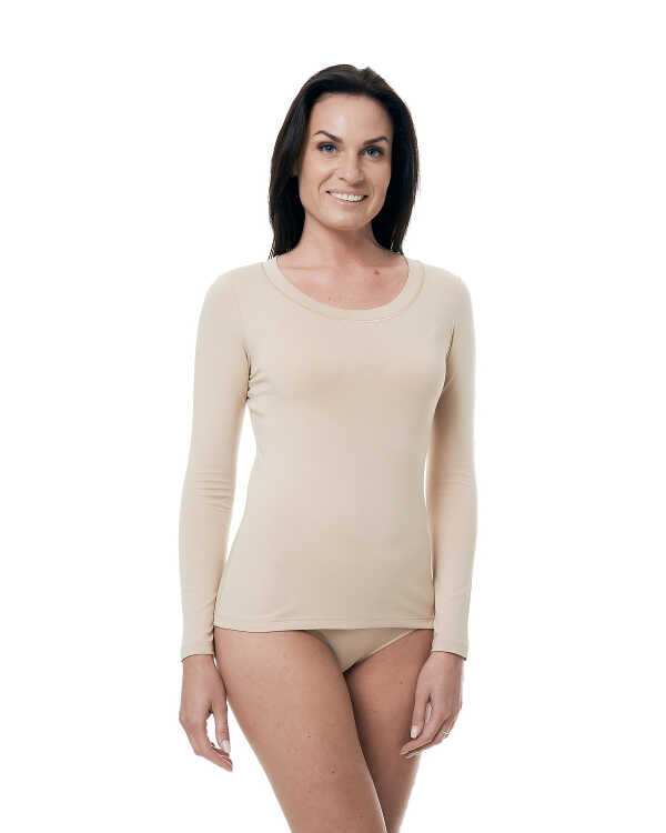 Apakškrekls no organiskās kokvilnas. Garas piedurknes. Smilškrāsas. – Rita