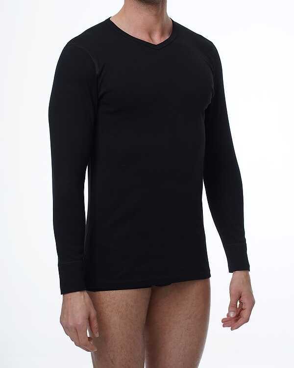 Kokvilnas apakškrekls ar garām piedurknēm. V-izgriezums. Melns.