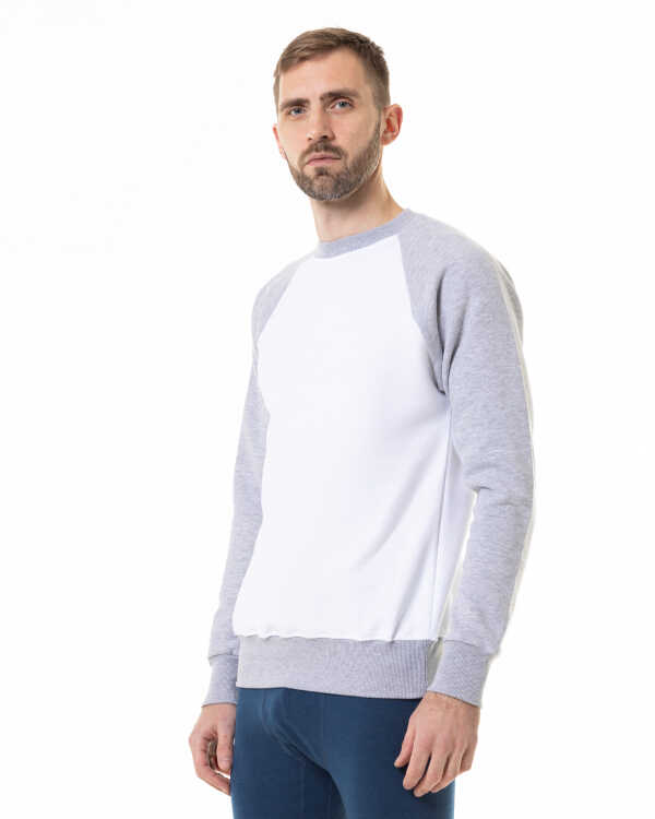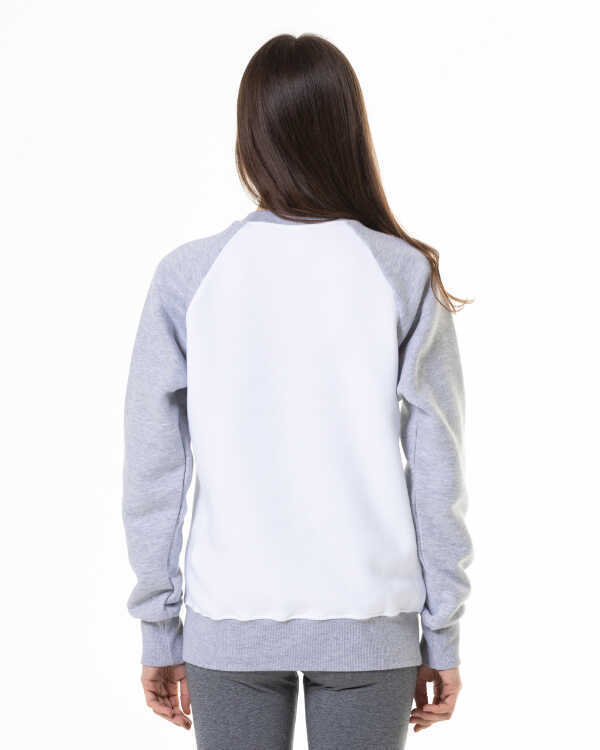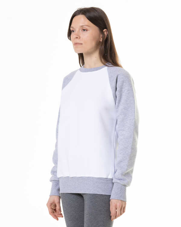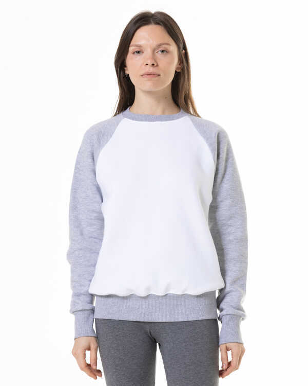 Unisex Raglan svitšots. Balts-melanžs.