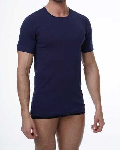 Kokvilnas apakškrekls ar īsām piedurknēm. Navy zils.