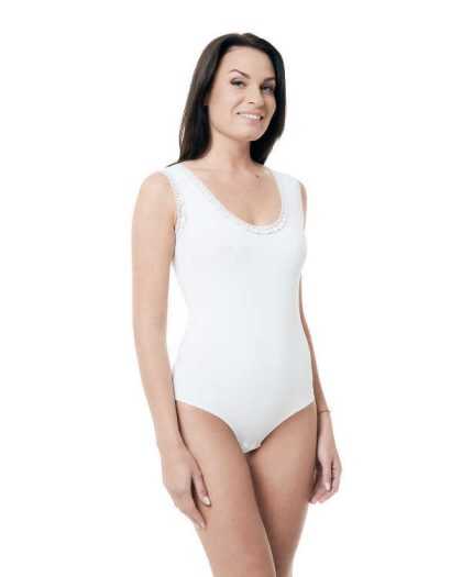 Klasisks bodijs no organiskās kokvilnas ar mežģīnēm. Balts.