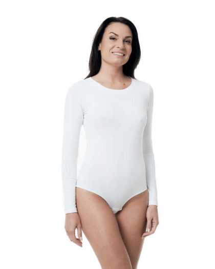 Klasisks bodijs no organiskās kokvilnas. Garas piedurknes. Balts.
