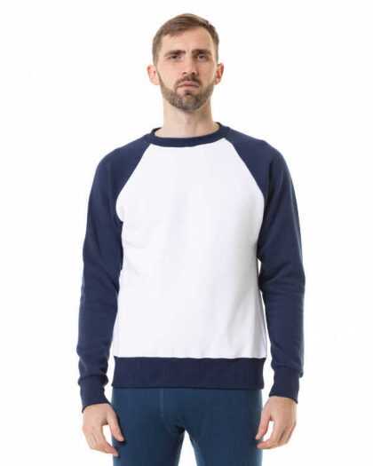 Unisex Raglan svitšots. Balts-tumši zils.