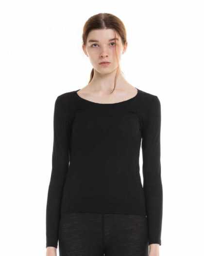 Sieviešu apakškrekls no merino vilnas ar garām piedurknēm. Melns.