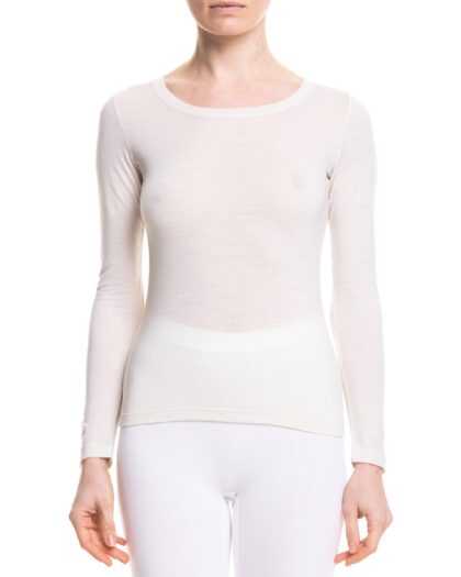 Sieviešu apakškrekls no merino vilnas ar garām piedurknēm. Offwhite.