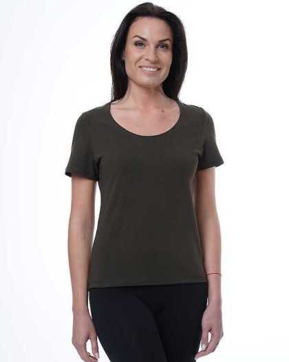 Sieviešu T-krekls ar īsām piedurknēm. Tumši brūns.
